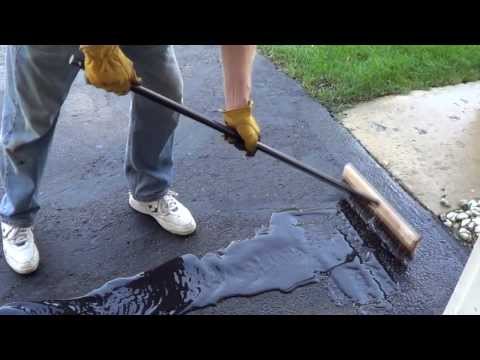 Hose down the driveway with a good cleaner and pull any weeds. Fill all large cracks with a crack sealer. Fill any holes with a pothole patch. Let any patches fully cure before you apply the sealer.